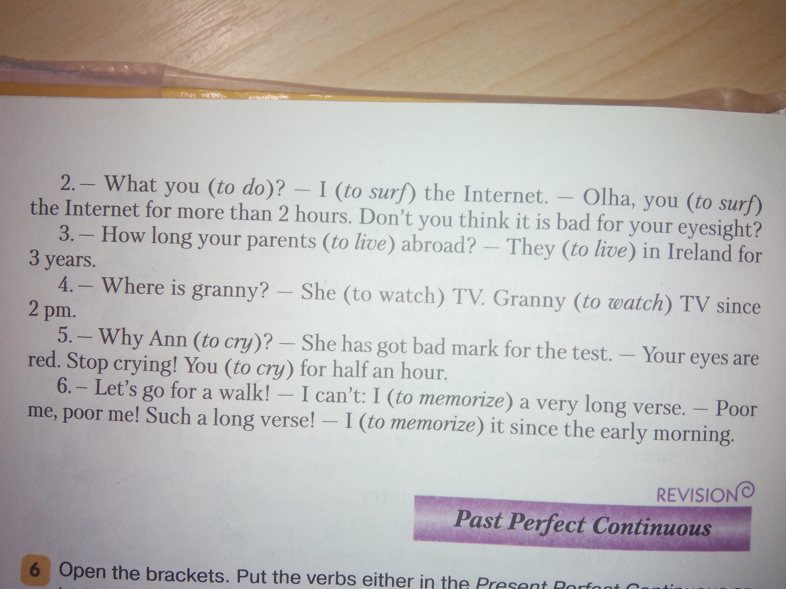 2. what are you doing? I'm surfing..................you have been surfing..............