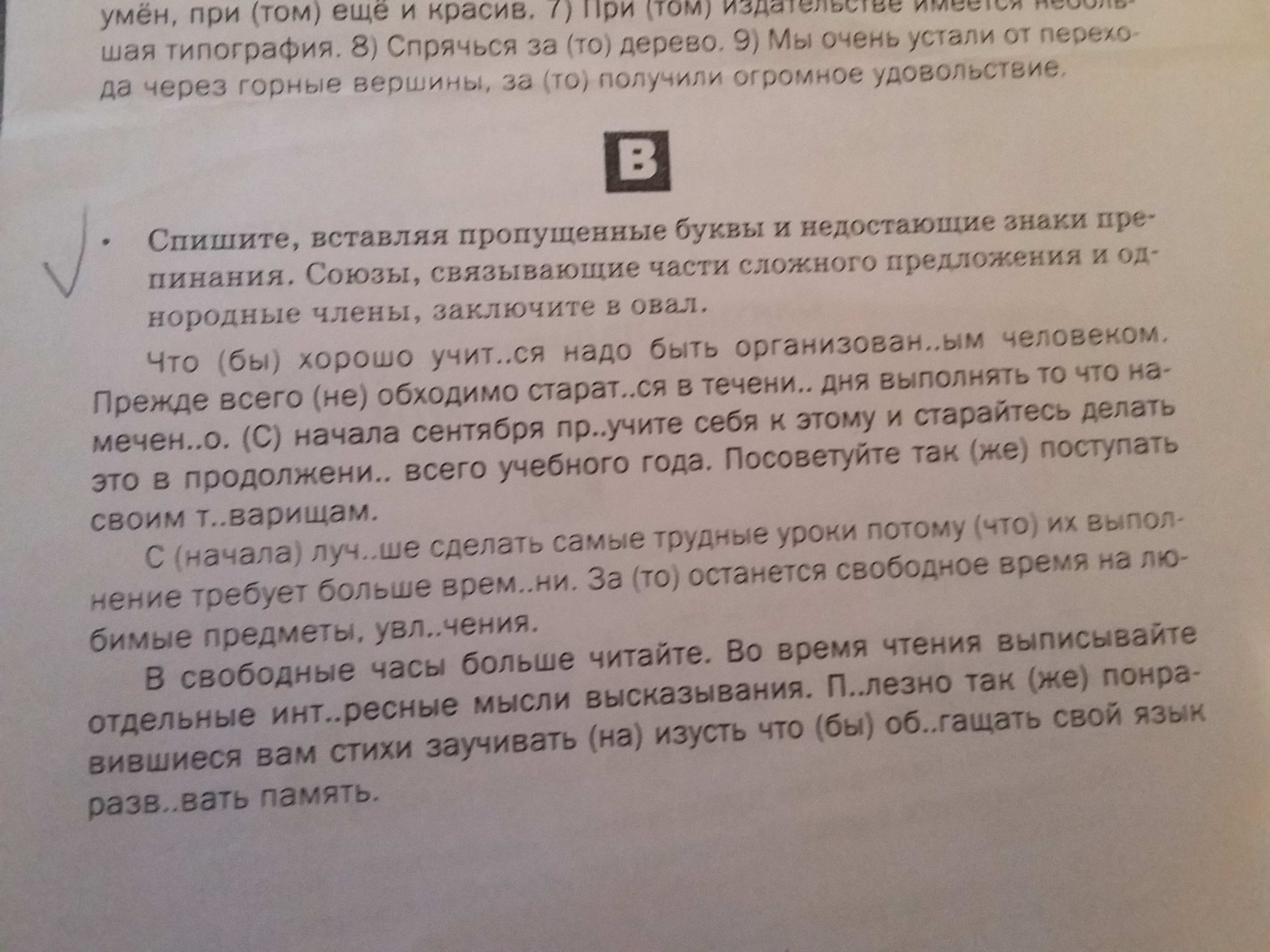 Чтобы хорошо учиться, надо быть организованным человеком. Прежде всего необходимо стараться в течение дня выполнять то, что намечено. С начала сентября приучите себя к этому и старайтесь делать это в продолжение всего учебного года. Посоветуйте так же поступать своим товарищам.