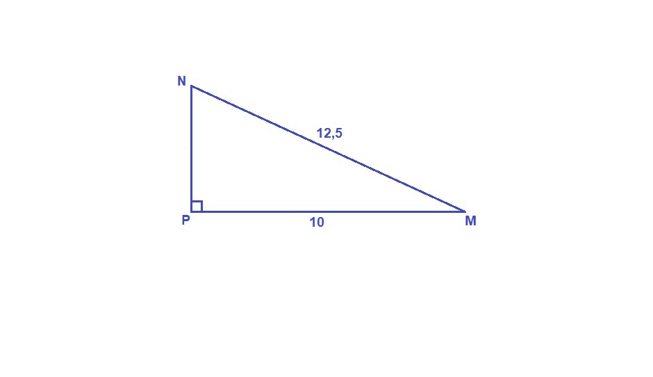 в прямоугольном треугольнике mnp угол p равен 90 градусов, гипотенуза равна 12,5 , а катет MP-10 . Найдите синус, косинус и тангенс угла N .