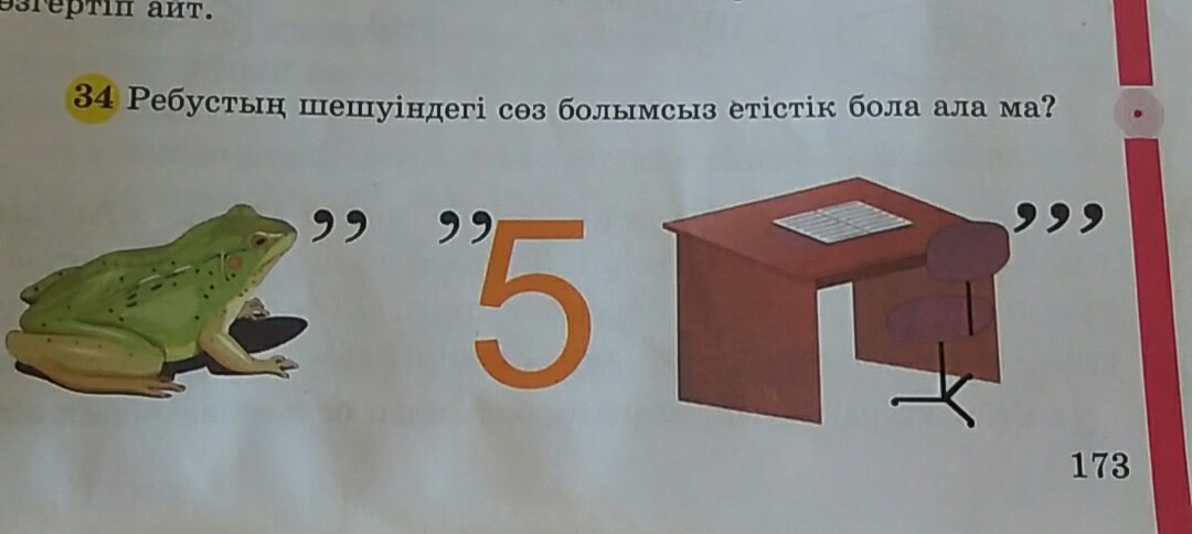 Перевод решите ребус. "Бақа" ( лягушка) , Бес (пять), Парта (парта)