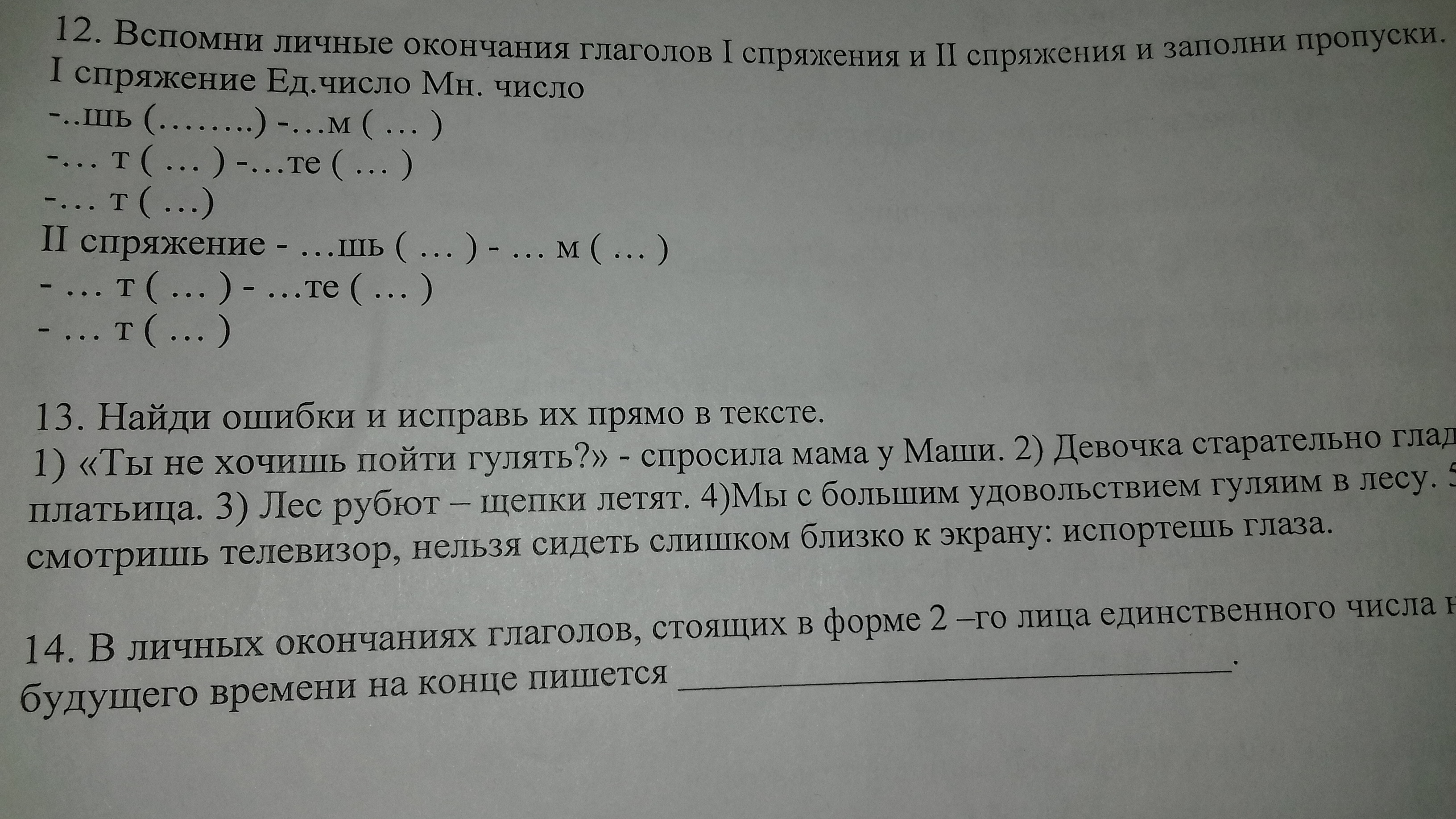 1)"Ты не хочешь пойти гулять?"- Спросила мама у Маши.2)Девочка старательно гладила платьице.3)Лес рубят- щебки летят.4)Мы с большим удовольствие гуляем в лесу.5)Ты близко смотришь телевизор,нельзя сидеть слишком близко к экрану: испортишь глаза.