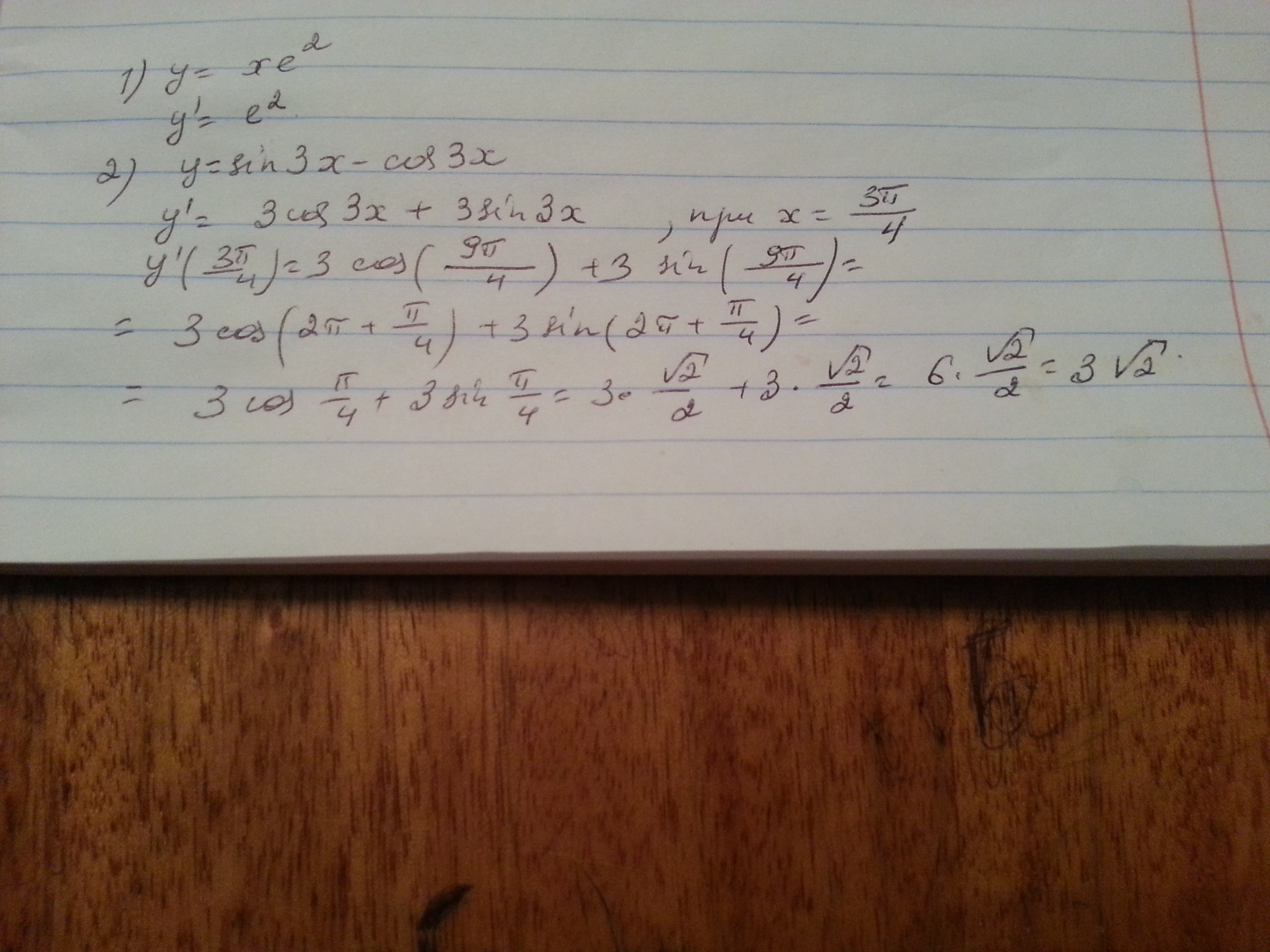 2.) знайти похідну функції y=sin3x - cos 3xта обчислити її значення , якщо x= 3п