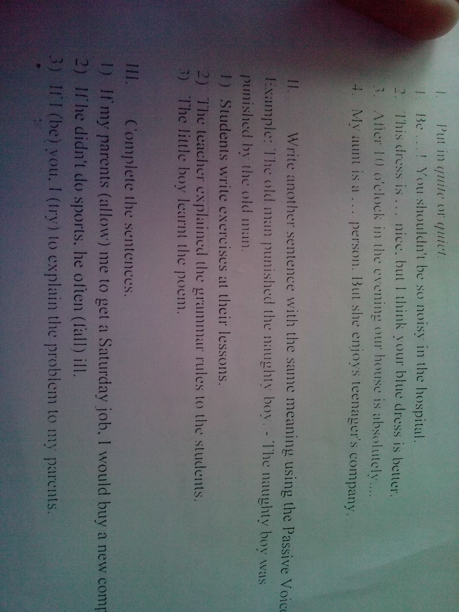 III. 1) ... allowed ... 2) ... he would often fall ill.3) If I were you, I would try to explain...