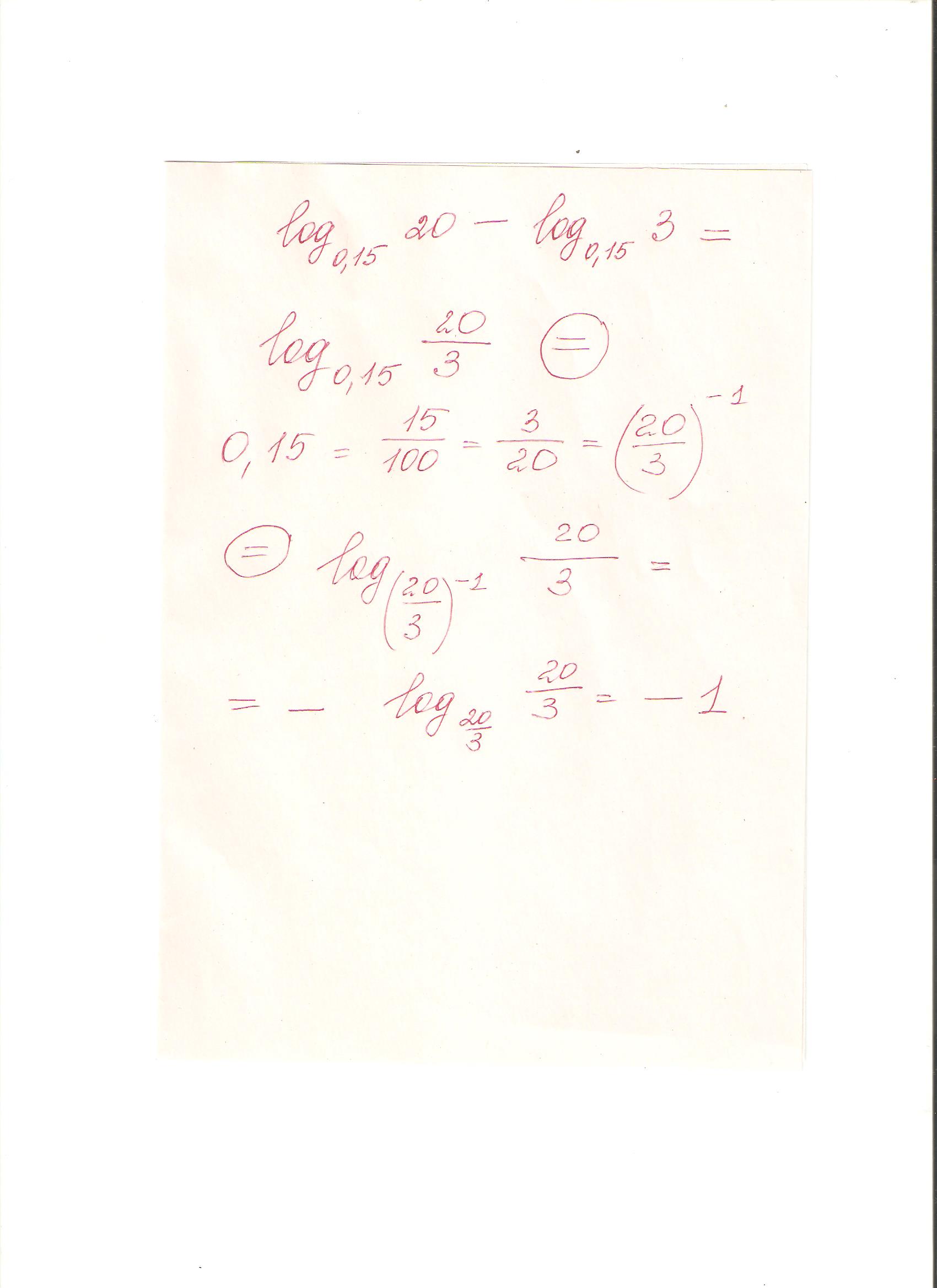log по основанию 0,15 в степени 20 минус log по основанию 0,15 в степени 3