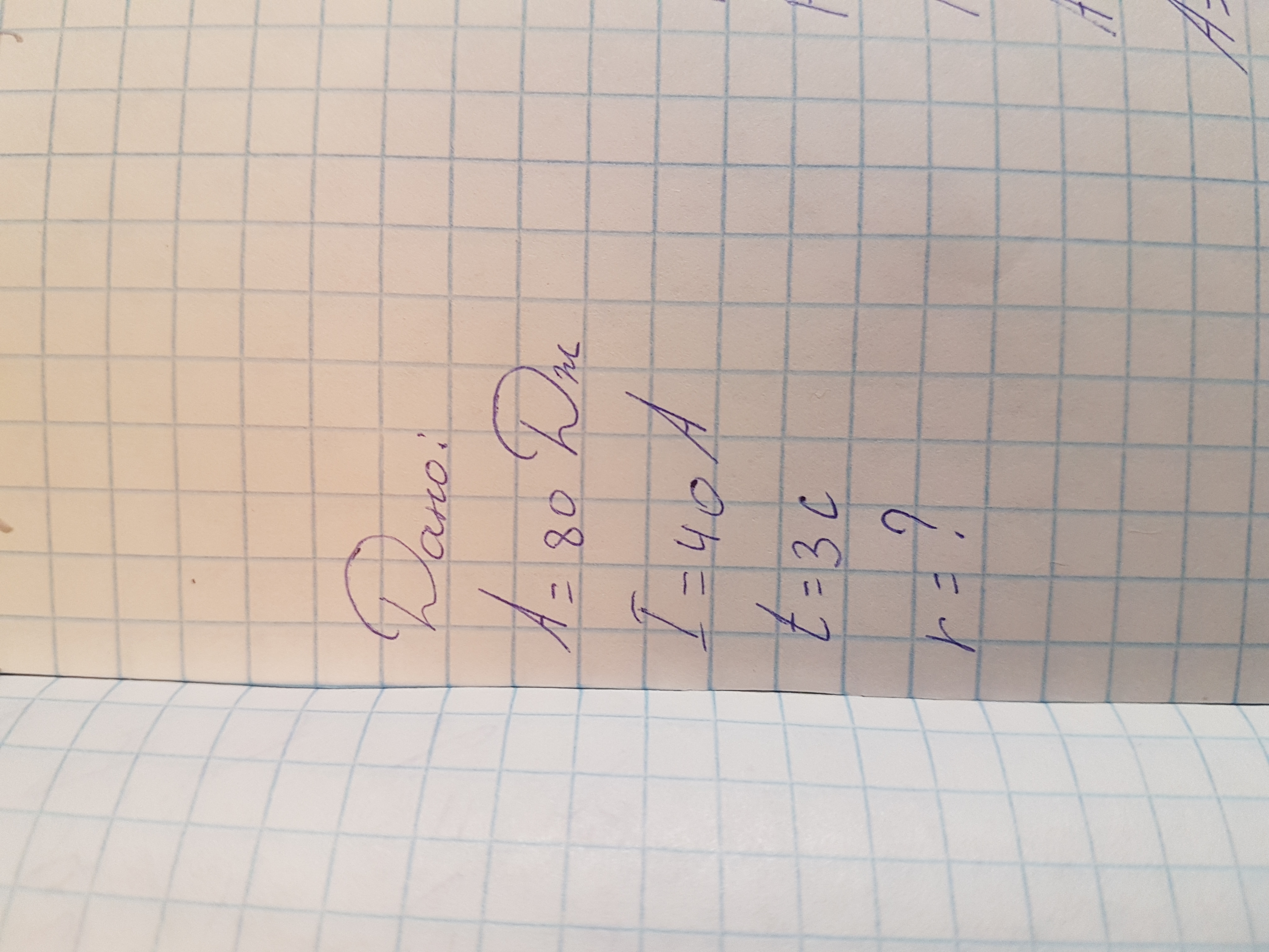 r=A/(I²*t)=80/(40²*3)≈0.017 Ом