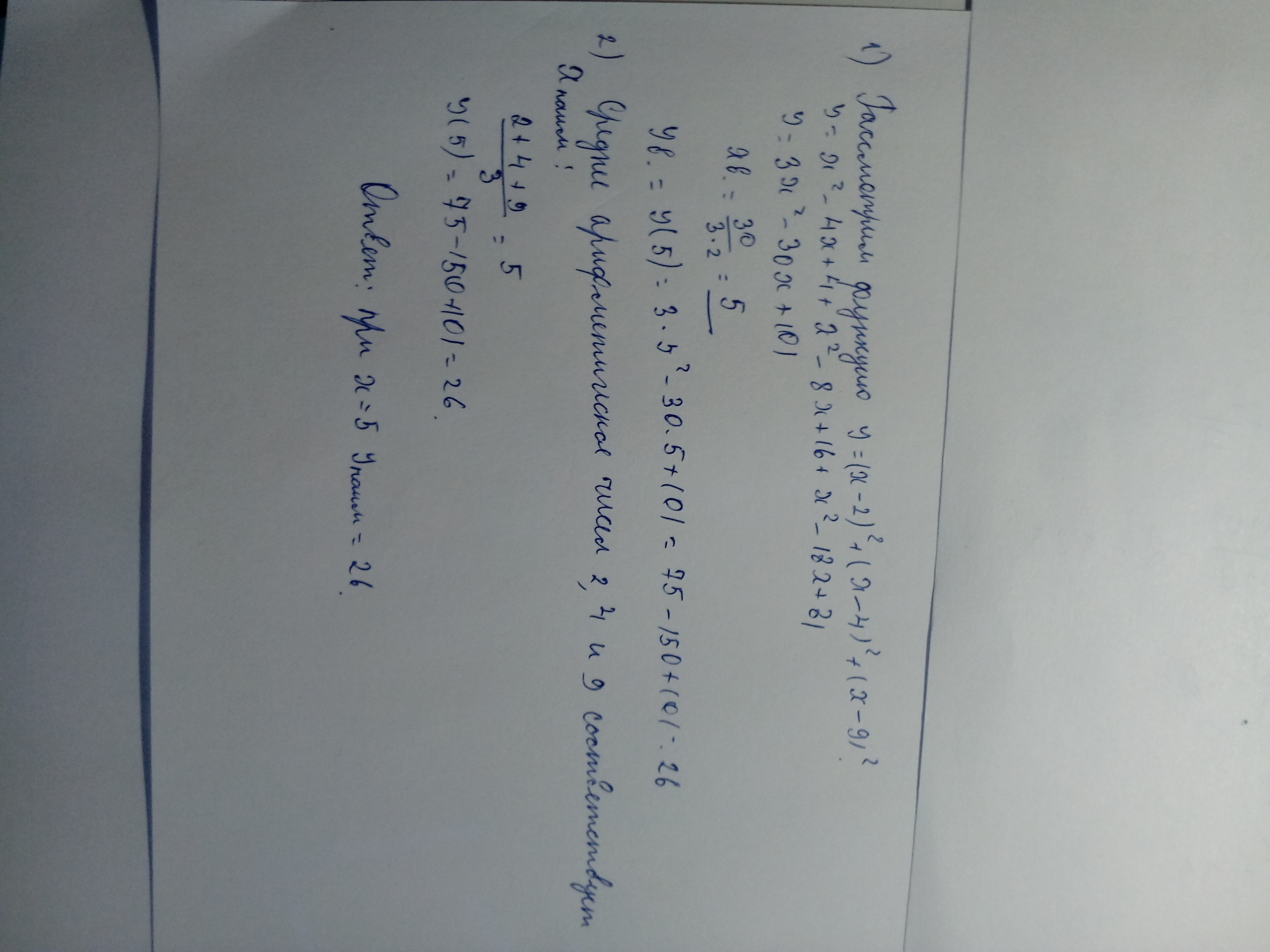 При каком значении x выражение (x - 2)² + (x - 4)² + (x - 9)² принимает наименьшее значение. Чему равно наименьшее искомое значение.