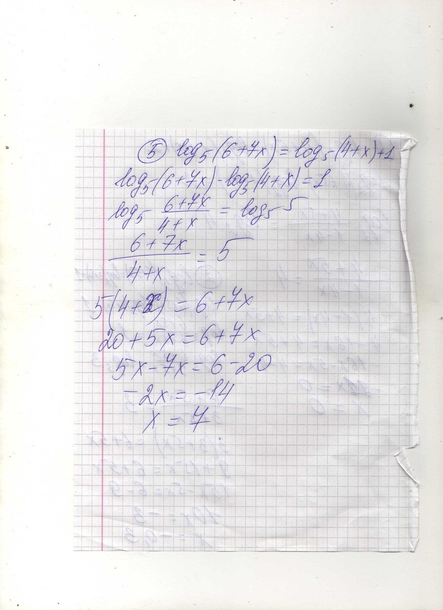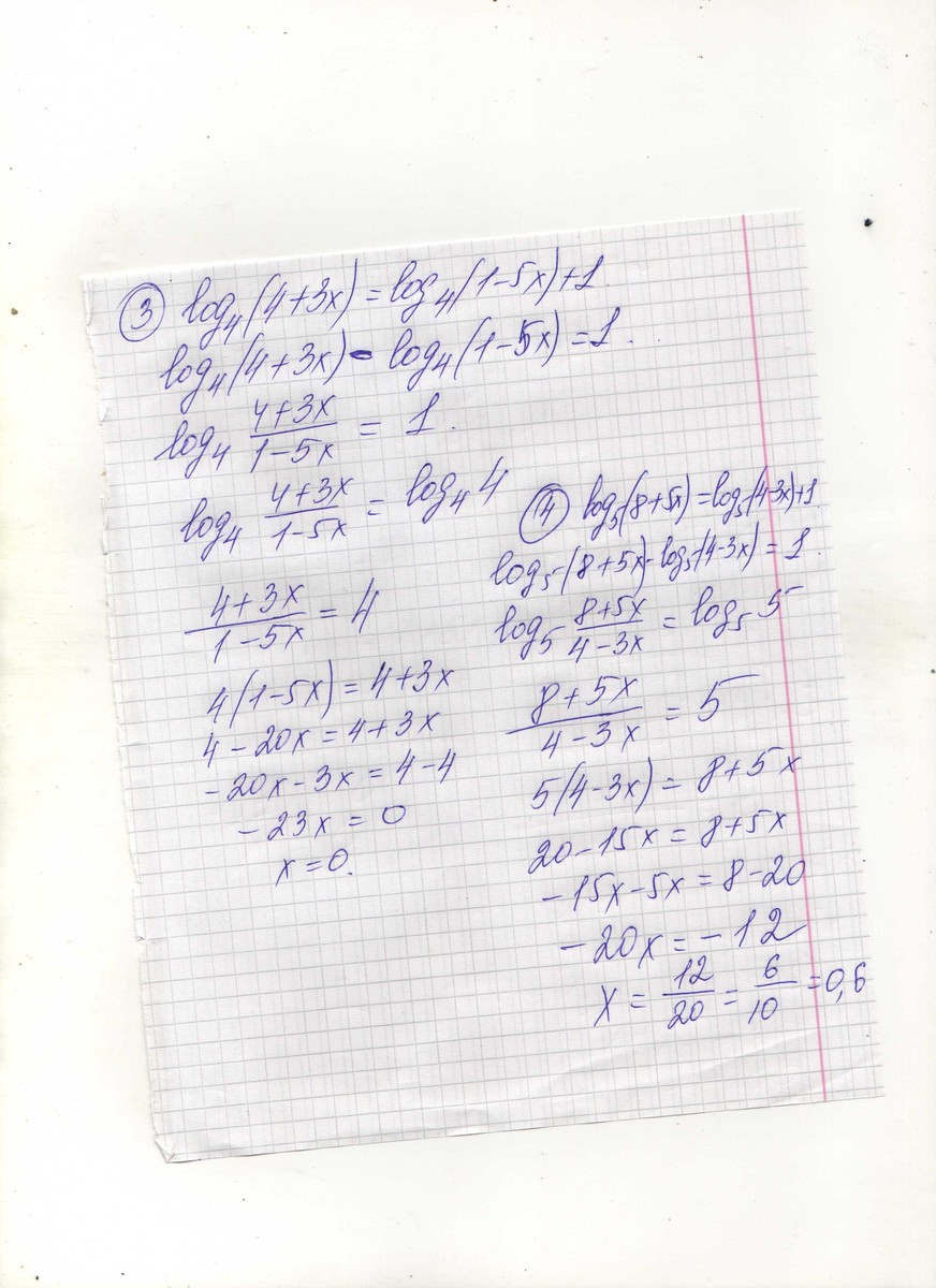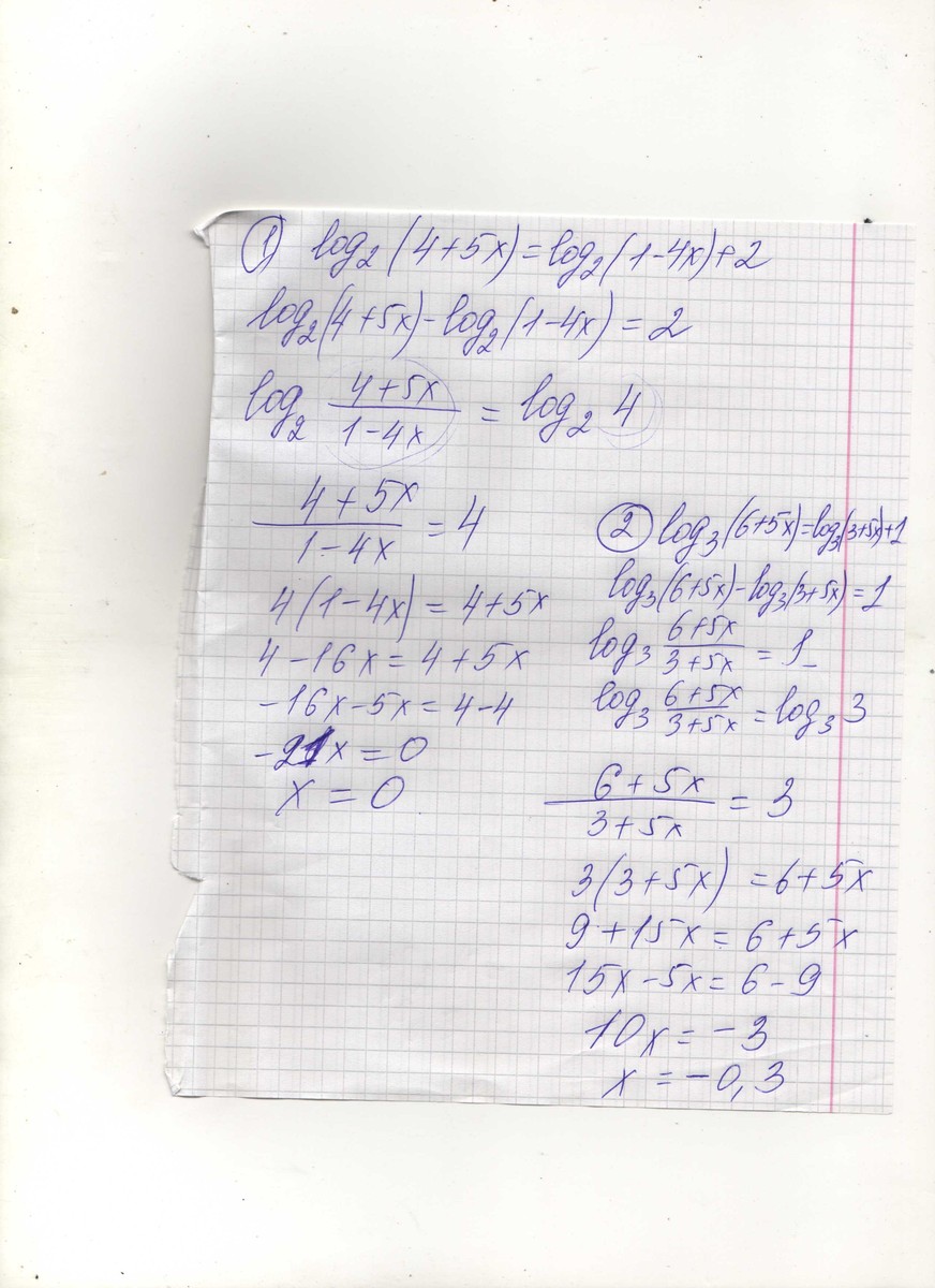 1)log2(4+5x)=log2(1-4x)+2 2)log3(6+5x)=log3(3+5x)+1 3)log4(4+3x)=log4(1-5x)+1 4)log5(8+5x)=log5(4-3x)+1 5)log5(6+7x)=log5(4+x)+1