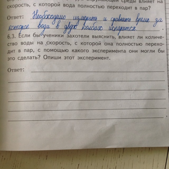 налить в кастрюлю разное количество воды.одну полную кастрюлю,а вторую два три см,и поставить на одинаковый огонь .в кастрюле в которой воды меньше вода быстрее начнет закипать , потом переходить в пар .кастрюля в которой воды больше будет долго нагреваться и закипать намного дольше чем в той в которой воды меньше....