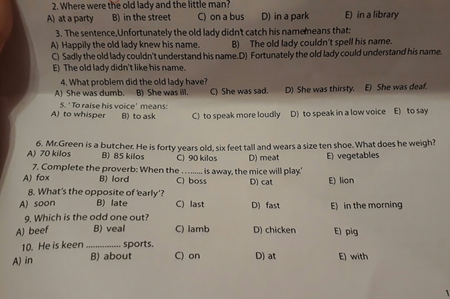 4. что бы ответить надо знать текст к которому эти задания - но предложу, что E. - она была глуховата