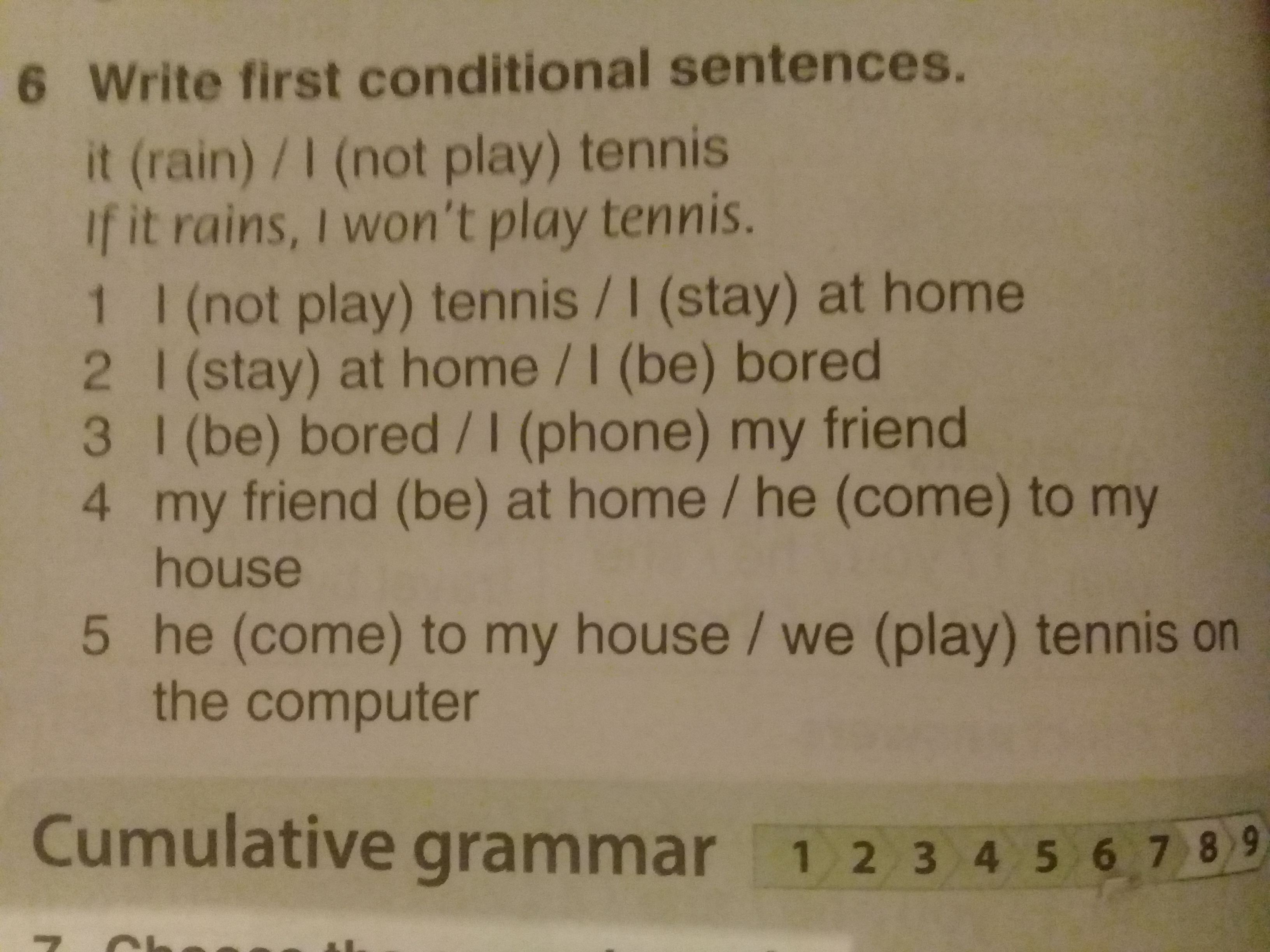 5)If he come to my house,we will play tennis on the computer.