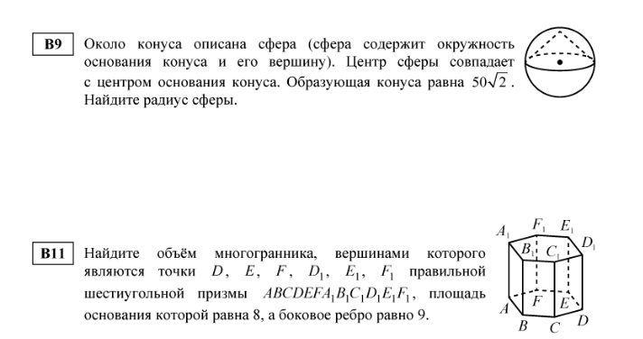 1) Образующие конуса в данном случае будут образовывать равнобедренный прямоугольный треугольник. Его гипотинуза будет равна 50. ( если стороны такого треугольника равны А, то гипотинуза будет А*корень из 2). Отсюда радиус равен 25. (Т.к. гипотинуза=диаметр сферы=2 радиуса.)