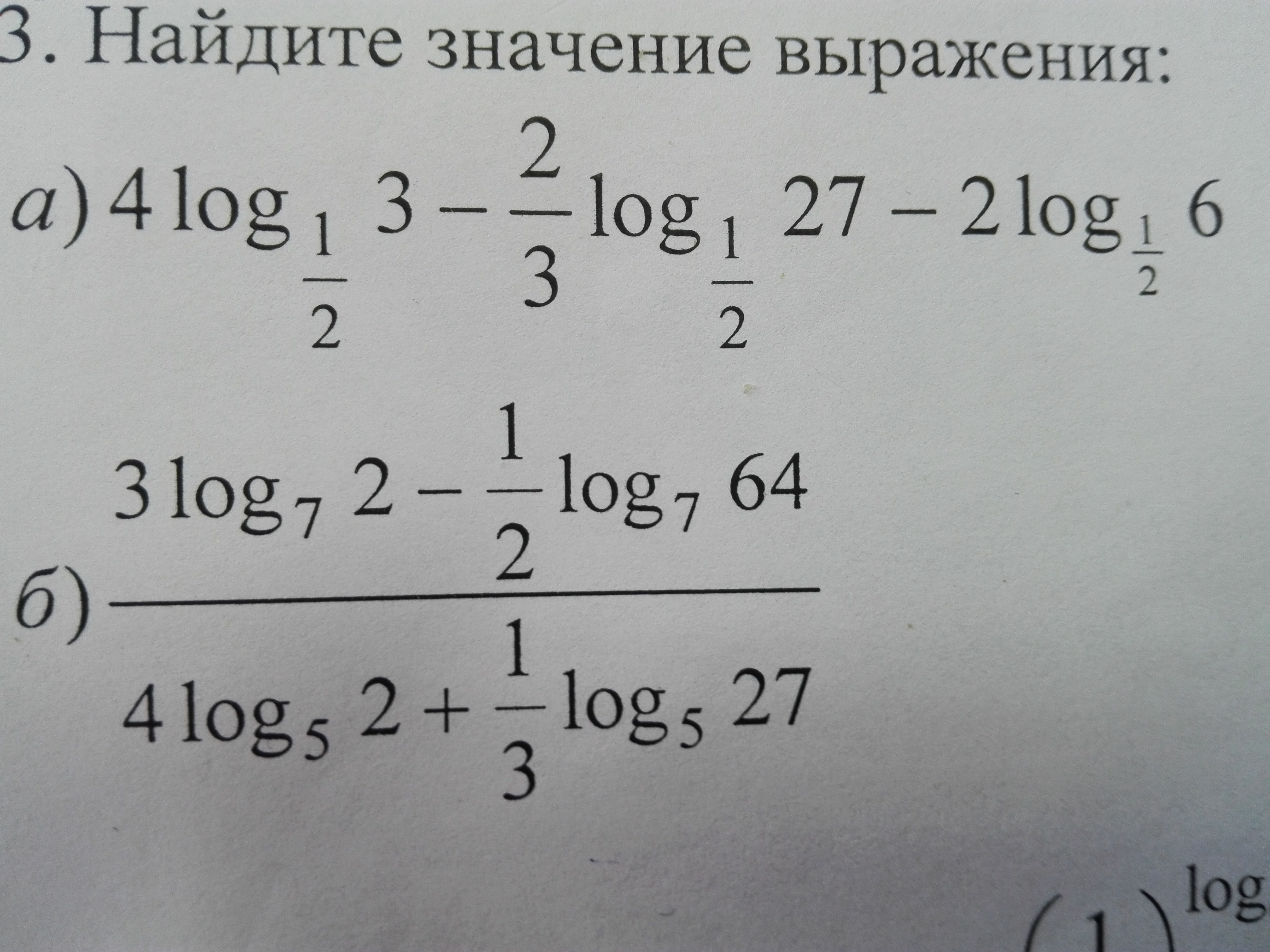 4log_{ frac{1}{2} }3- frac{2}{3} log_{ frac{1}{2} }27-2log_{ frac{1}{2} }6=4log_{ frac{1}{2} }3- frac{2}{3} log_{ frac{1}{2} }3^3-2log_{ frac{1}{2} }6==4log_{ frac{1}{2} }3- frac{2}{3}*3 log_{ frac{1}{2} }3-2log_{ frac{1}{2} }6=4log_{ frac{1}{2} }3-2 log_{ frac{1}{2} }3-2log_{ frac{1}{2} }6==2(2log_{ frac{1}{2} }3- } log_{ frac{1}{2} }3-log_{ frac{1}{2} }6)=2(log_{ frac{1}{2} }9- } log_{ frac{1}{2} }3-log_{ frac{1}{2} }6)=2(log_{ frac{1}{2} }3-log_{ frac{1}{2} }6)=2log_{ frac{1}{2} } frac{3}{6} =2log_{ frac{1}{2} } frac{1}{2}=2