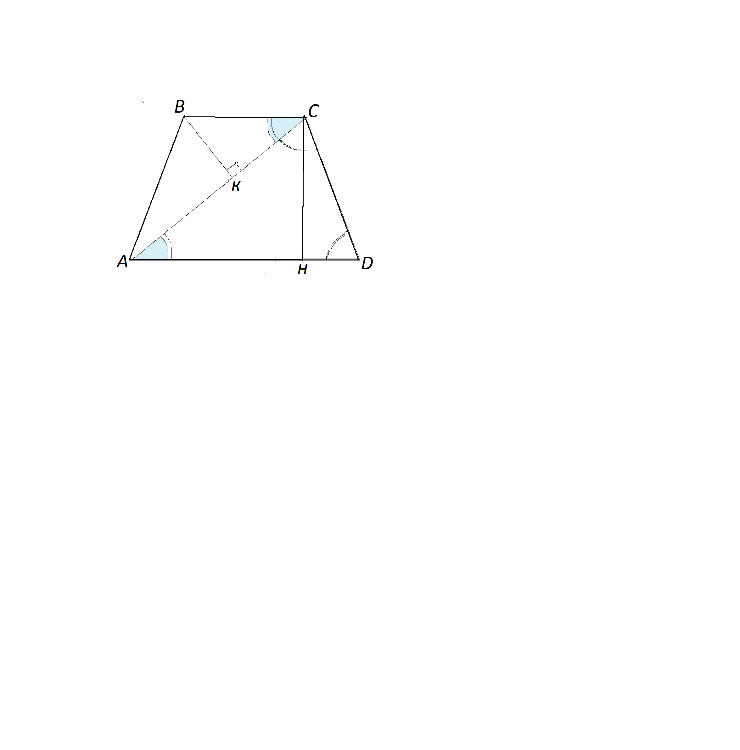 Углы САН и ВСК в них равны как накретслежащие при параллельных ВС и АD и секущей АС.