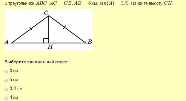 ∆ АСВ - равнобедренный, СН высота и медиана. ⇒ АН=АВ/2=4