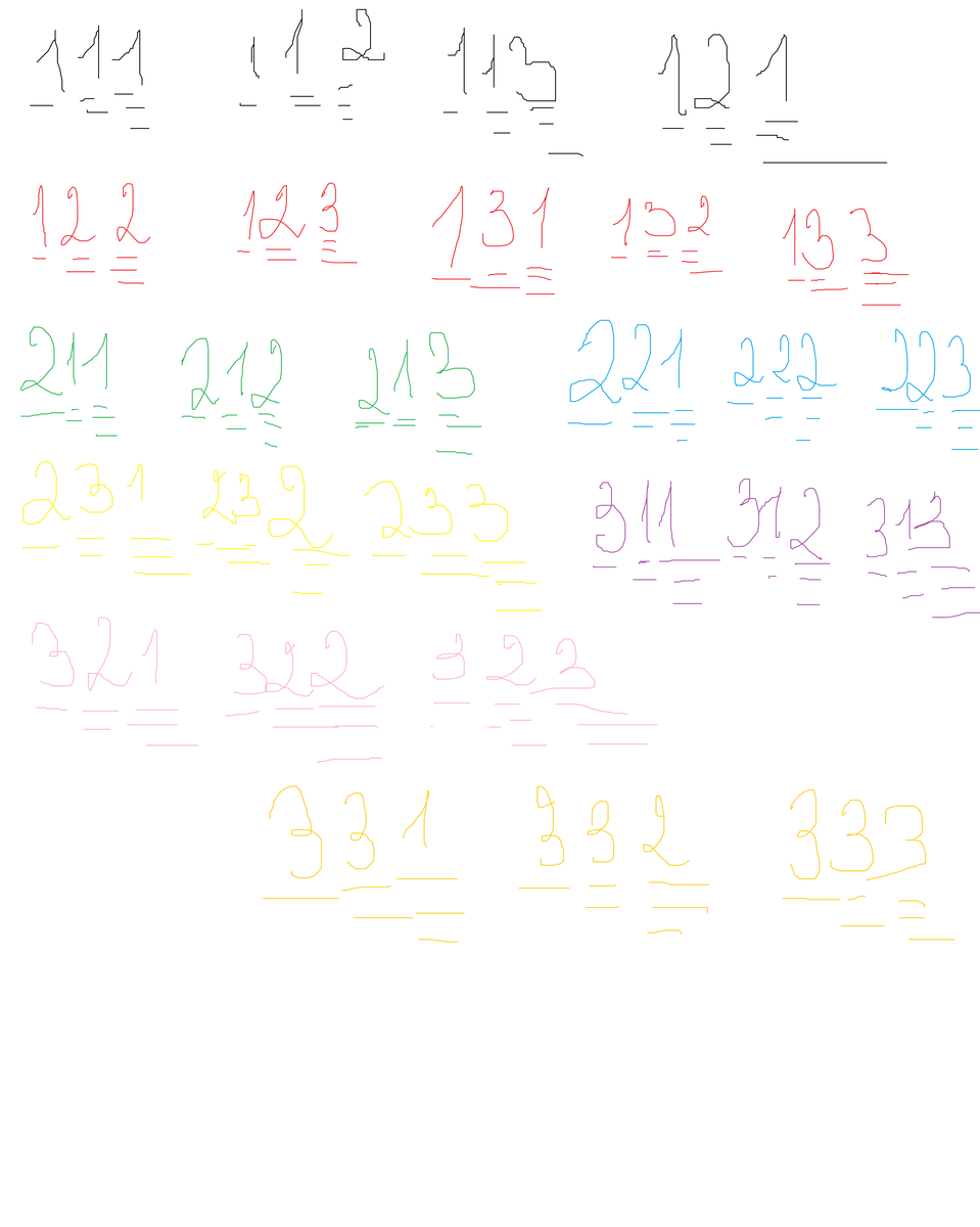 111;112;113;121;122;123;131;132;133;211;212;213;221;222;223;231;232;233;311;312;313;321;322;323;331;332;333