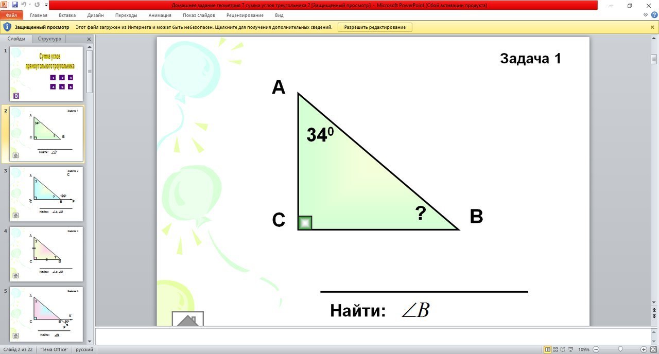 1. прямоугольный треугольник...сумма углов 180..-34 -90 =56