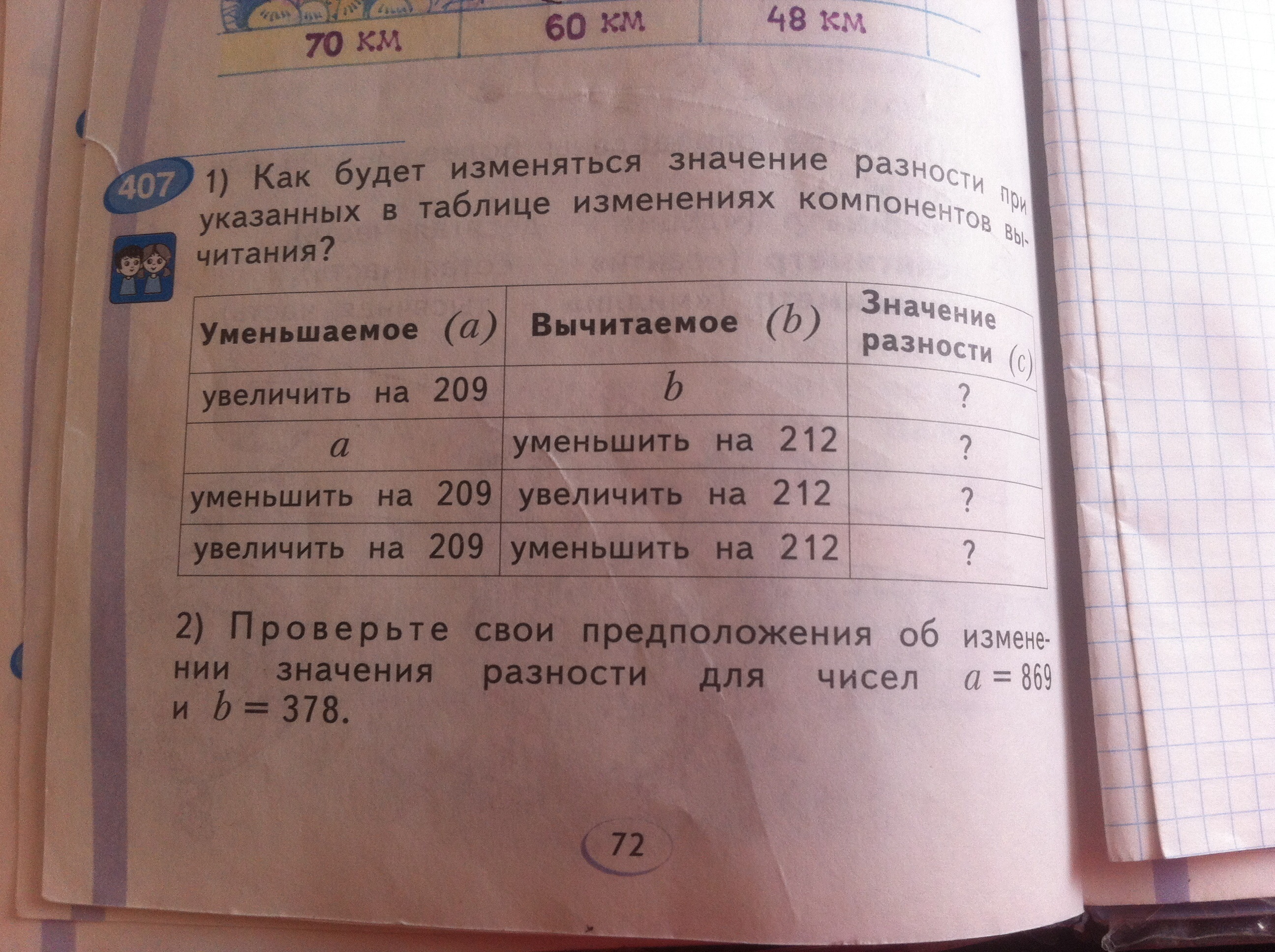 1) Как будет изменяться значение разности при указанных в таблице изменениях компонентов вычитания? Таблица