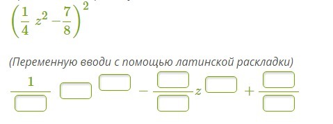((1/4)z -(7/8))² =(1/16)z² -2*(1/4)z*(7/8)+(49/64) =(1/16)z² -(7/16)z+(49/64)