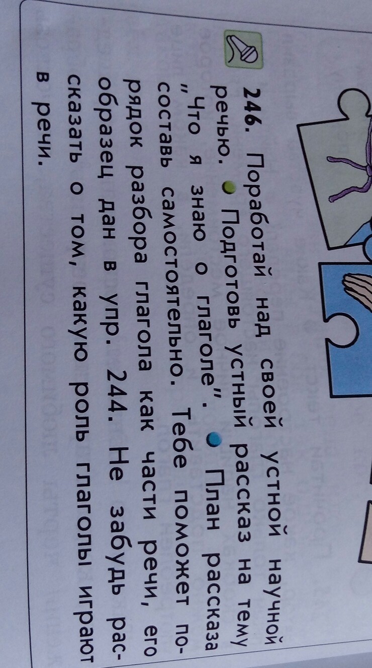 Глагол, одна из самых главных частей речи. С помощью глагола мы можем знать что делает предмет или человек или животное, то есть глагол обозначает действие. Глагол изменяется по родам, то есть он может быть женского, мужского и среднего рода.