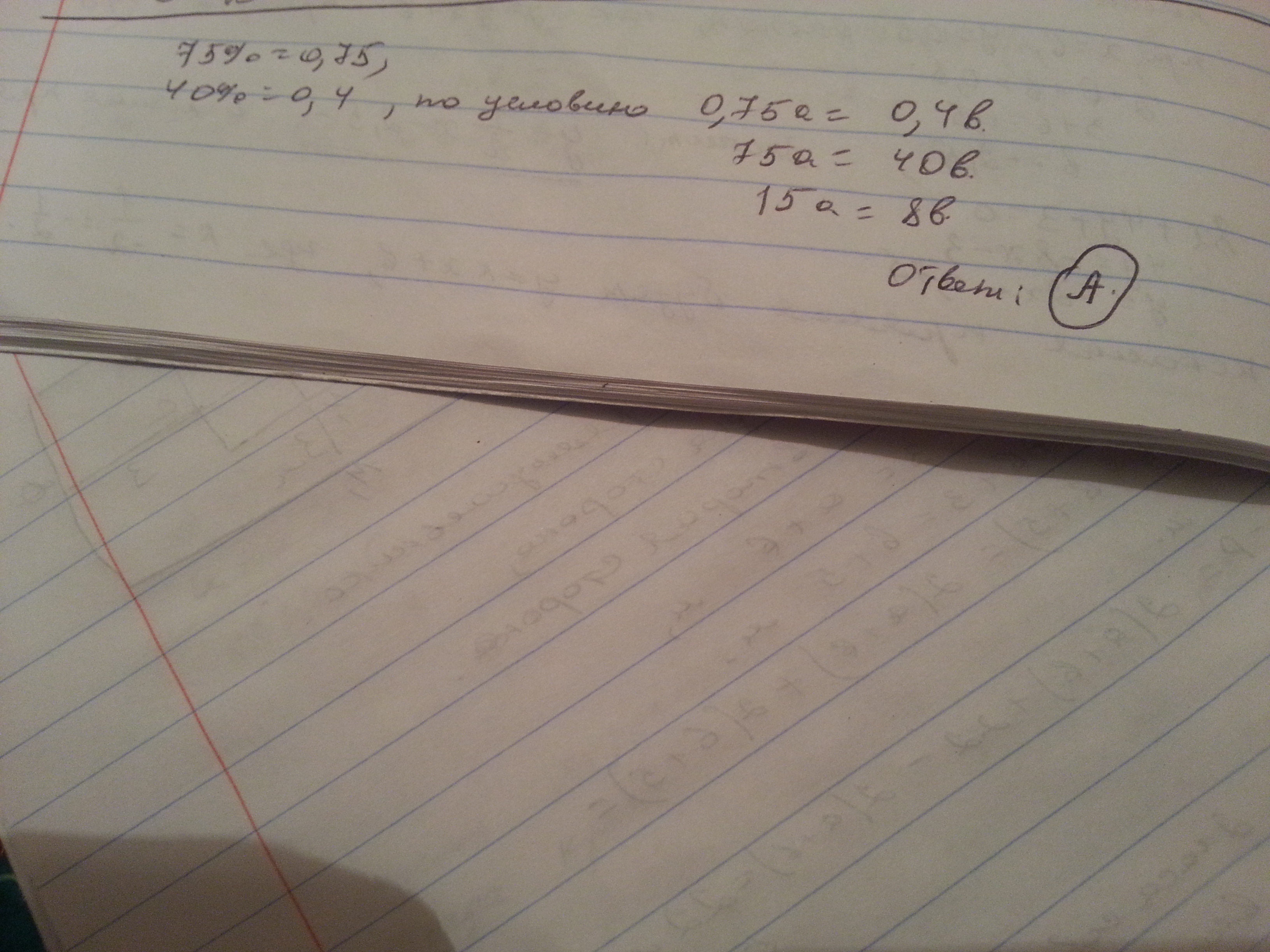 про положительные числа a и b известно что 75℅ от числа a равно 40℅ от числа b . Это значит что