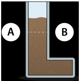 Сосуд с водой имеет форму, изображённую на рисунке. Как ты думаешь одинаково ли давление жидкости на боковые стенки сосуда на уровне AB.