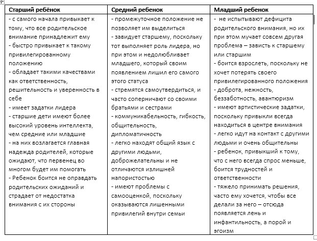 | Старший ребёнок | Средний ребенок | Младший ребенок |