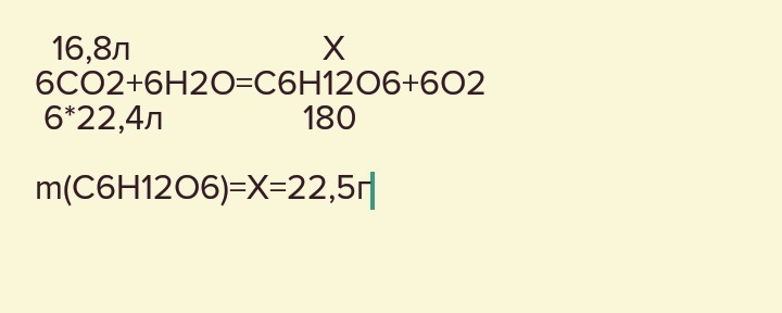 вычислите массу глюкозы образовавшейся в процессе фотосинтеза если объем поглощаемого CO2 составляет 16,8 дм