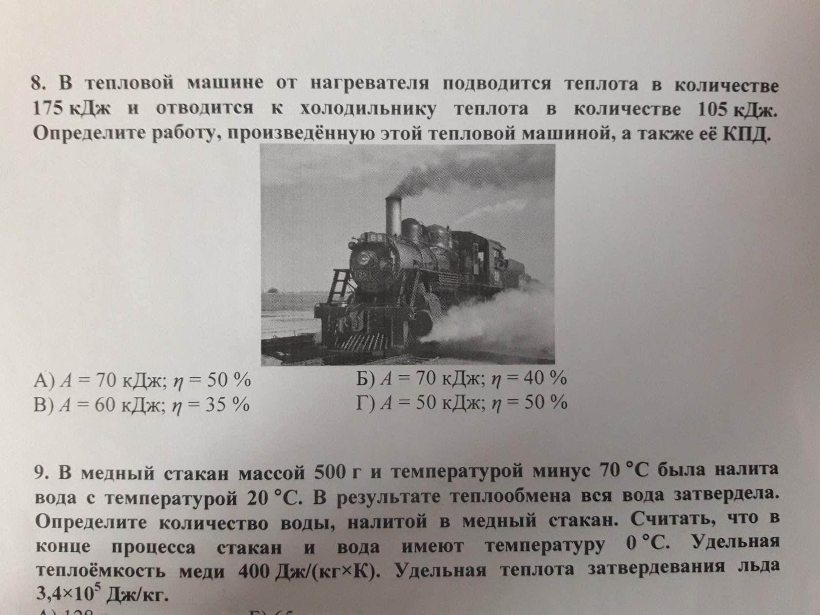 кпд находится по формуле (Qн-Qх)/Qн*100% где Qн- теплота нагреватиля