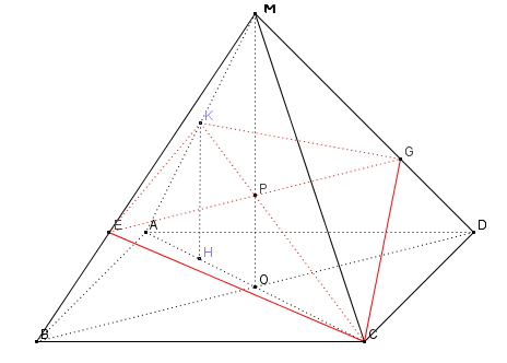 EKGC - четырехугольник, диагонали которого - перпендикулярны: BD⊥MO,BD⊥AC⇒BD⊥(MAC)⇒BD⊥CK.