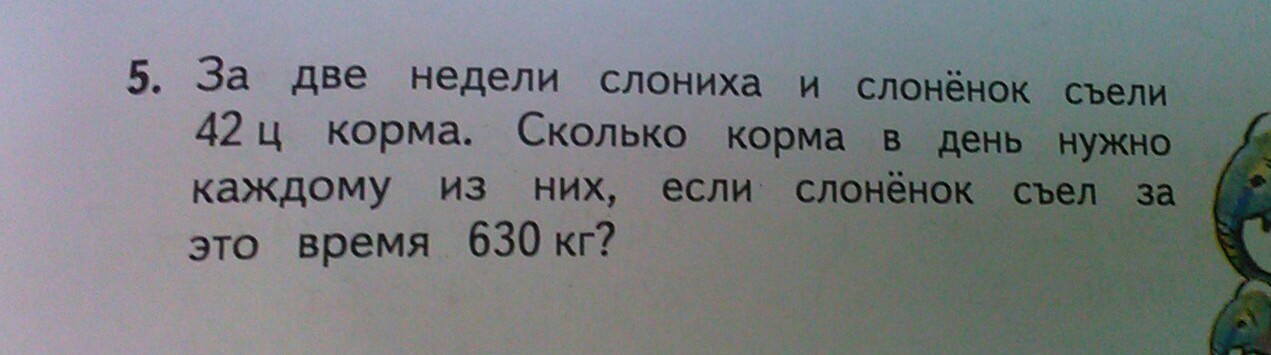 2) 4200-630=3570 съела слониха за 2 недели. 2недели-14дн.