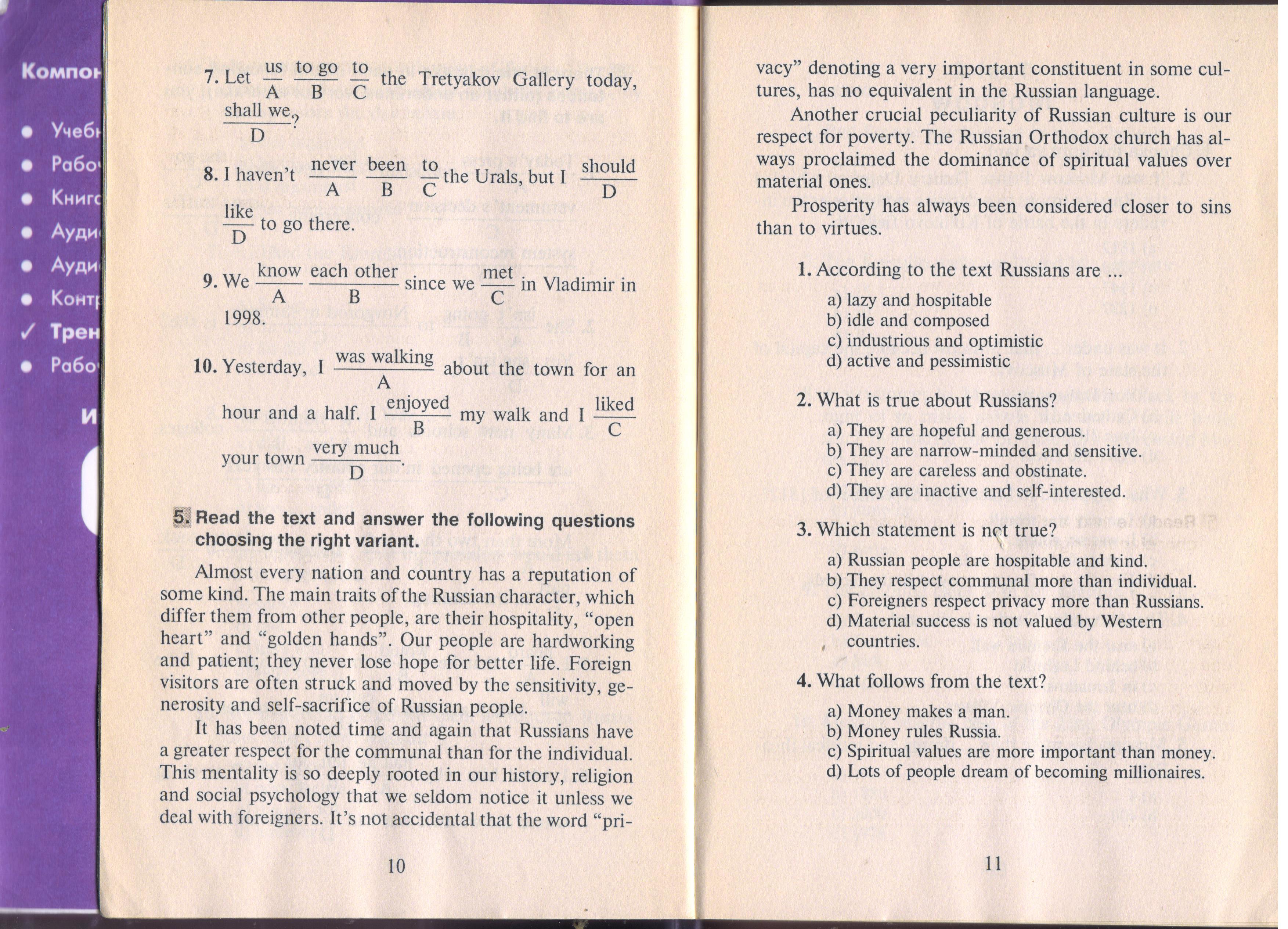 Почти у каждого народа и страны есть какая-то репутация. Главными чертами русского характера, отличающими их от других людей, являются их гостеприимство, «открытое сердце» и «золотые руки». Наши люди трудолюбивы и терпеливы; Они никогда не теряют надежды на лучшую жизнь. Иностранных посетителей часто поражают и трогают чуткость, щедрость и самопожертвование русских людей.Неоднократно отмечалось, что россияне проявляют большее уважение к общине, чем к личности. Этот менталитет настолько глубоко укоренен в нашей истории, религии и социальной психологии, что мы редко замечаем его, если не имеем дело с иностранцами. Не случайно слово «неприкосновенность частной жизни», обозначающее очень важную составляющую в некоторых культурах, не имеет эквивалента в русском языке.Еще одной важной особенностью русской культуры является наше уважение к бедности. Русская православная церковь всегда провозглашала господство духовных ценностей над материальными.Процветание всегда считалось ближе к грехам, чем к добродетелям.
