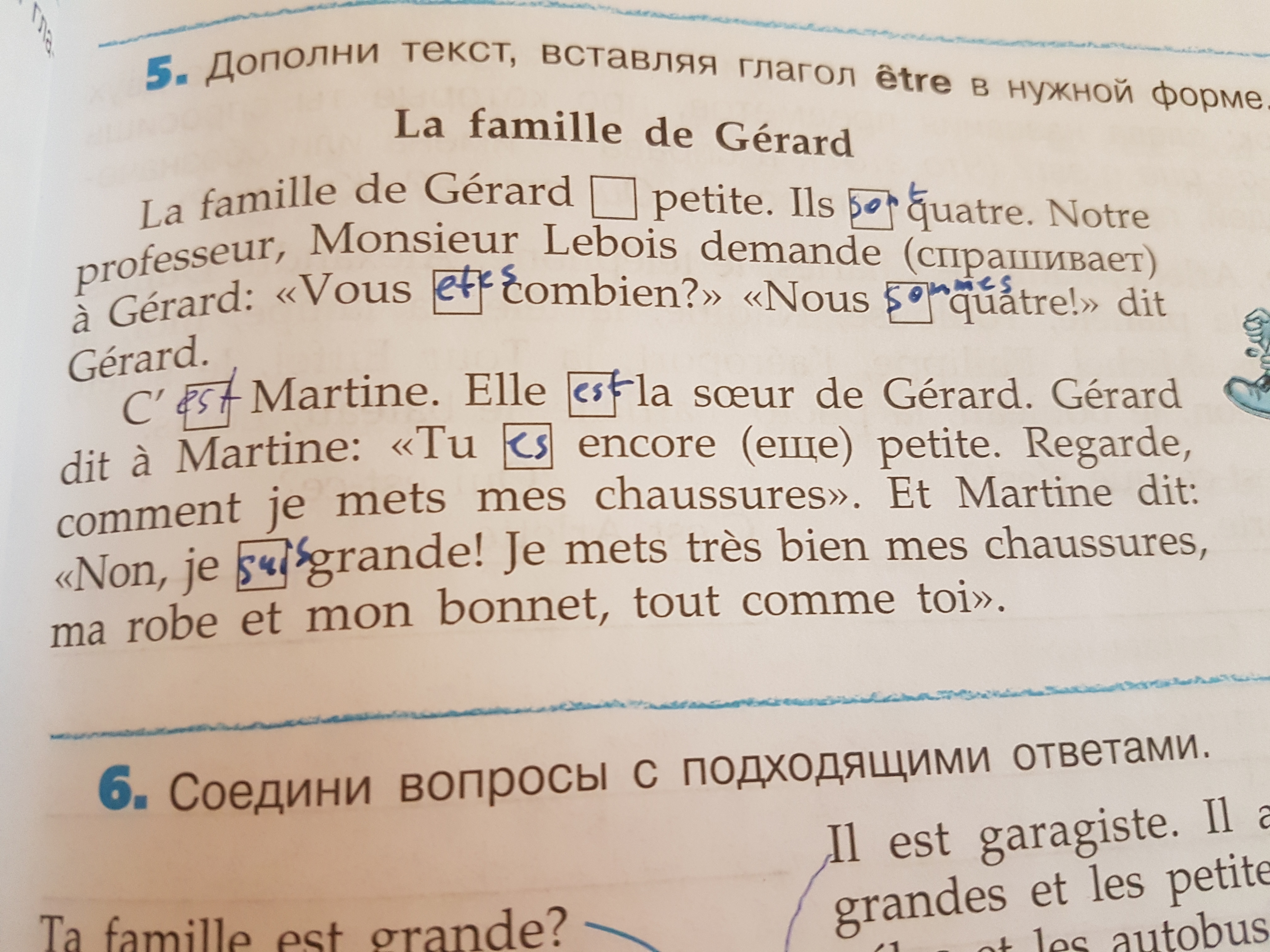 5)a)la famille...est; b)ils sont; c)vous êtes; nous sommes; d)c'est; e)elle est; e)tu es; f)je suis;