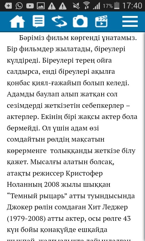 Менің сүйікті актрисам Әмина Өмірзақова. Ол кісі өз кейіпкерлерін жақсы сомдаған. Өз кейіпкерілерін қатты беріліп ойнағаны сонша, кино көріп емес, дәл өмірде араласып солардың ортасында жүргендей боласың. Ол ойнаған "Тақиялы періште" фильмі қандай керемет. Ол өзінің баласына жар іздейді. Ал, баласы ол таңдаған қыздарды ұнатпайды.