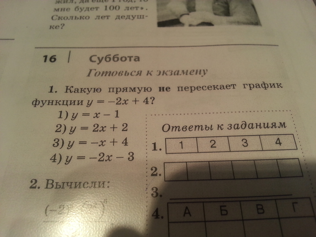 4.y=-2x-3 не пересекается график функции y=2x+4