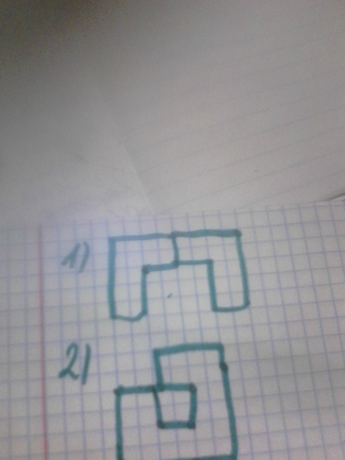 Вот тебе два варианта и нужно было всего лишь из квадратиков закрашенных красным на рисунке составить другие рисуночки вот от меня получилось 2 чертежа лучше вариант 2