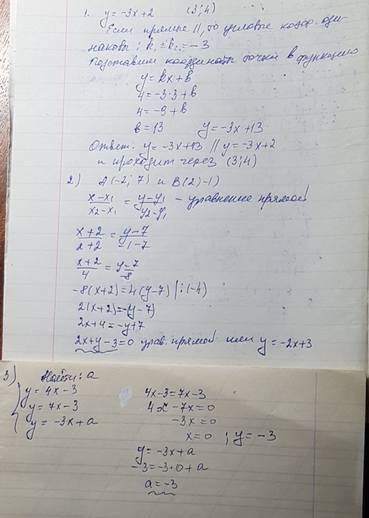 2)Запишите уравнение прямой,проходящей через точки A( -2; 7) и B( 2; -1)