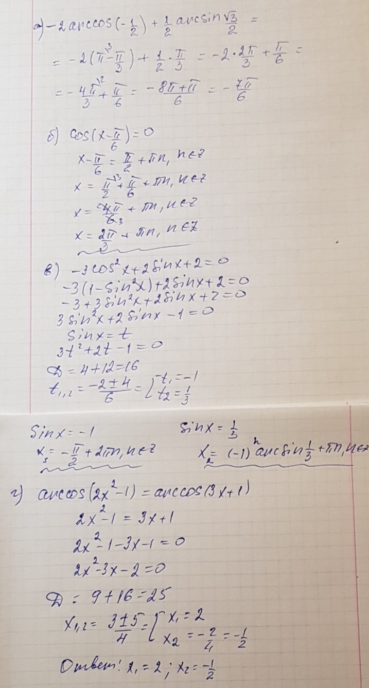 -2arccos(-1/2)+1/2arcsin(корень из 3 /2)