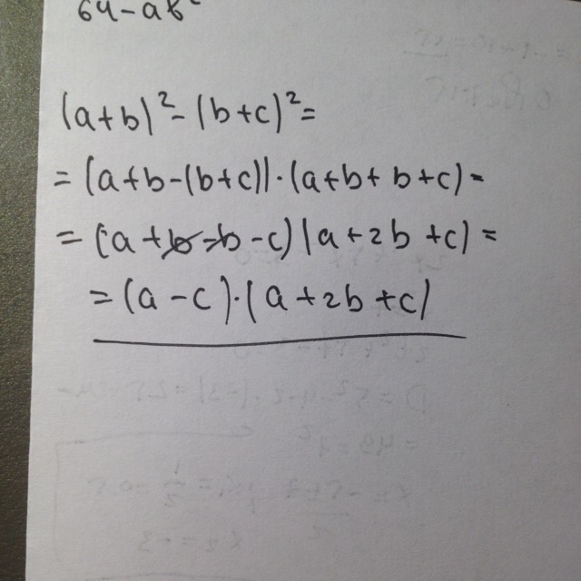 ( a + b )^2 - ( b + c )^2 = ( a + b + b + c )•( a + b - b - c ) = ( a + 2b + c )•( a - c )