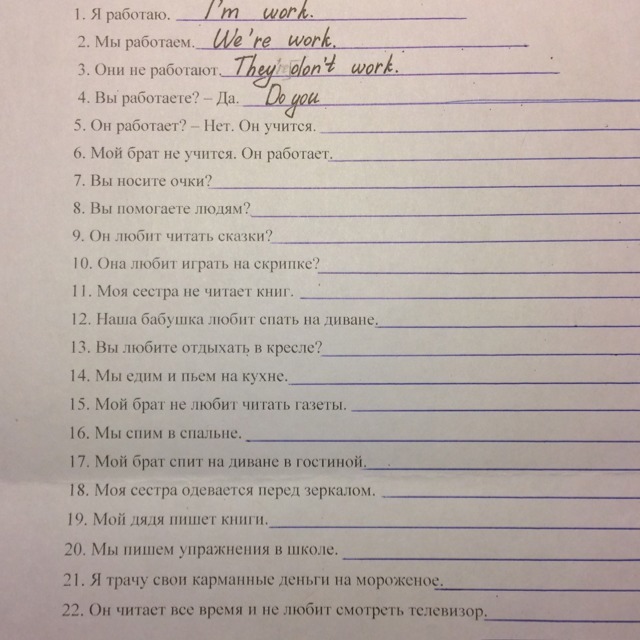 Переведите, пожалуйста, предложения! Буду очень благодарна!!! (На мои записи не смотреть)
