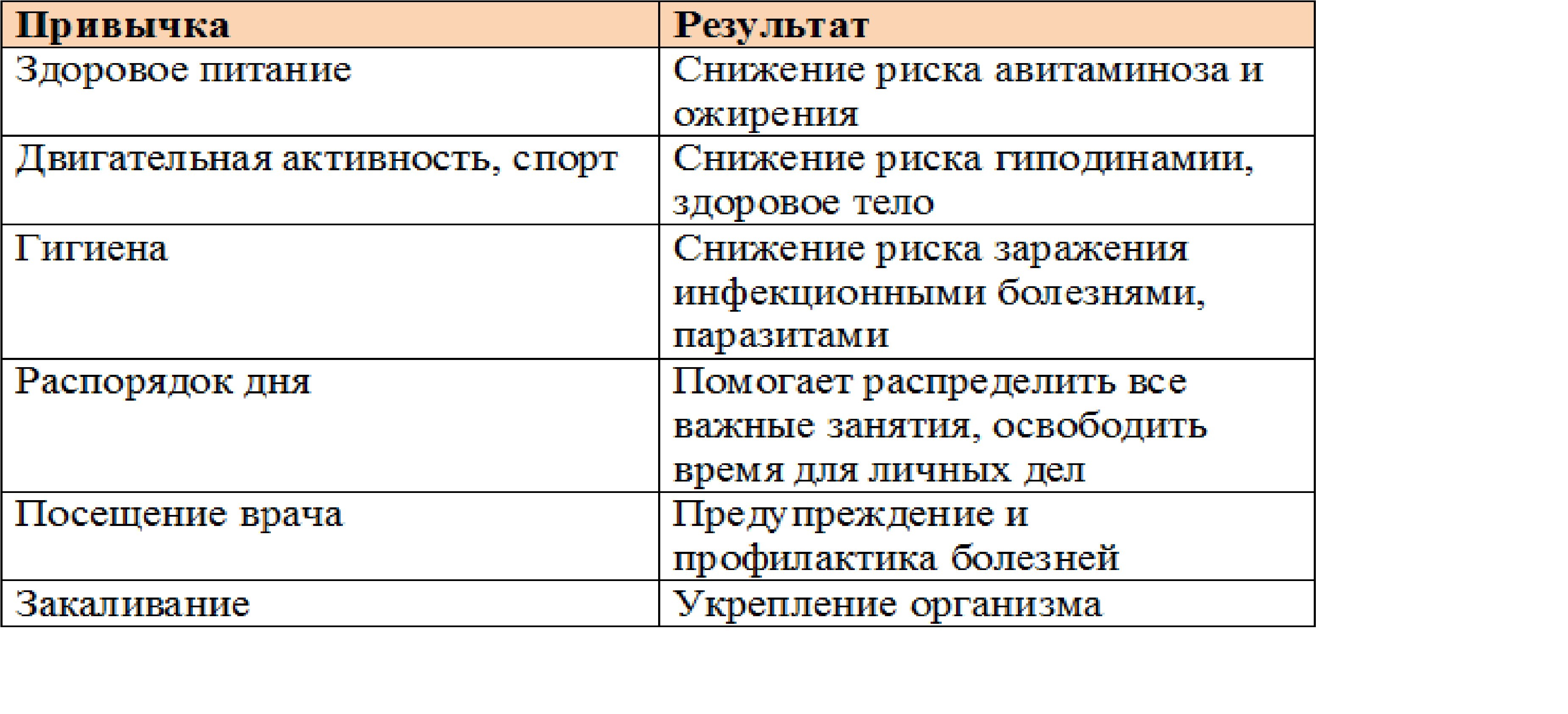 подготовьте сообщение "Жизненные привычки,способствующие сохранению и укреплению моего здоровья". Запишите его в табличной форме