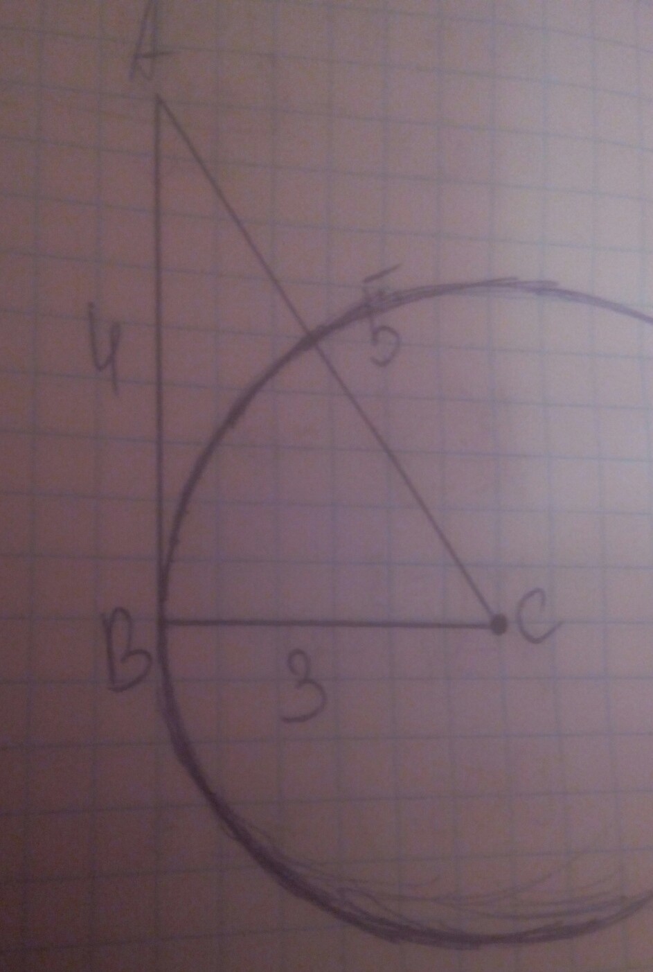 В треугольнике АВС АВ = 4 см. ВС=3 см, АС=5 см. Докажите, что АВ – отрезок касательной, проведенной из точки А к окружности с центром в точке С и радиусом, равным 3 см.