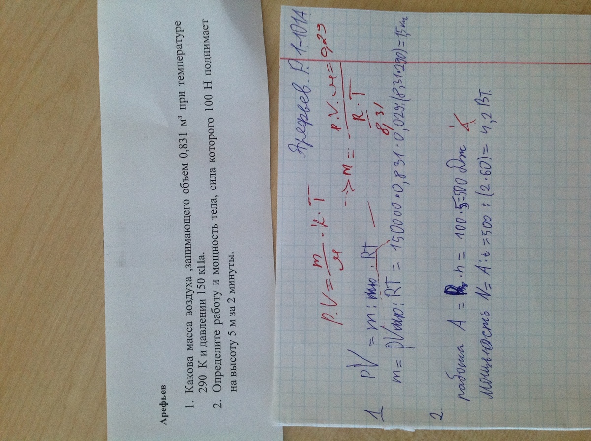 m=(150 000* 0,831 *0,029)/(8,31*290)= 150 000/(10* 10 000)=1,5 кг