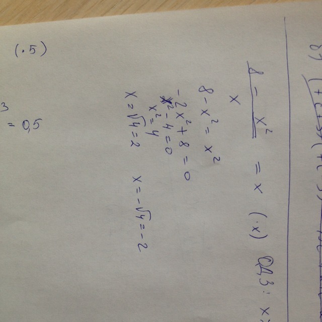 8-x²/x=x при x≠0 8-x=x 2x=8 x=4