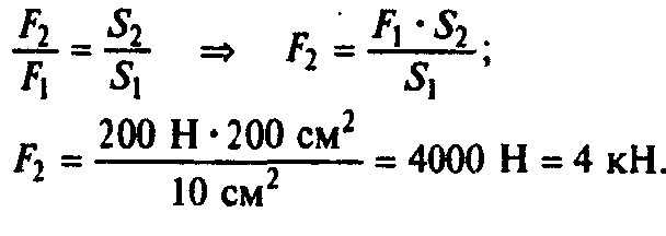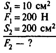 1) Площадь меньшего поршня гидравлического пресса 10 см2. На него действует сила 200 Н. Площадь большего поршня 200 см2. Какая сила действует на больший поршень?