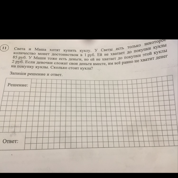 1+Х=85 ,Х=84- Маши,84+2=86-стоит кукла