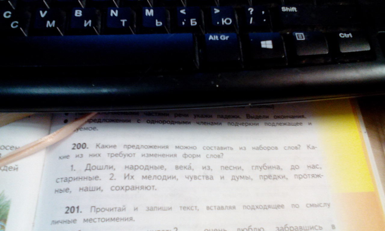 помогите из слов составить предложения, если где надо меняя формы слов. Упр№200.