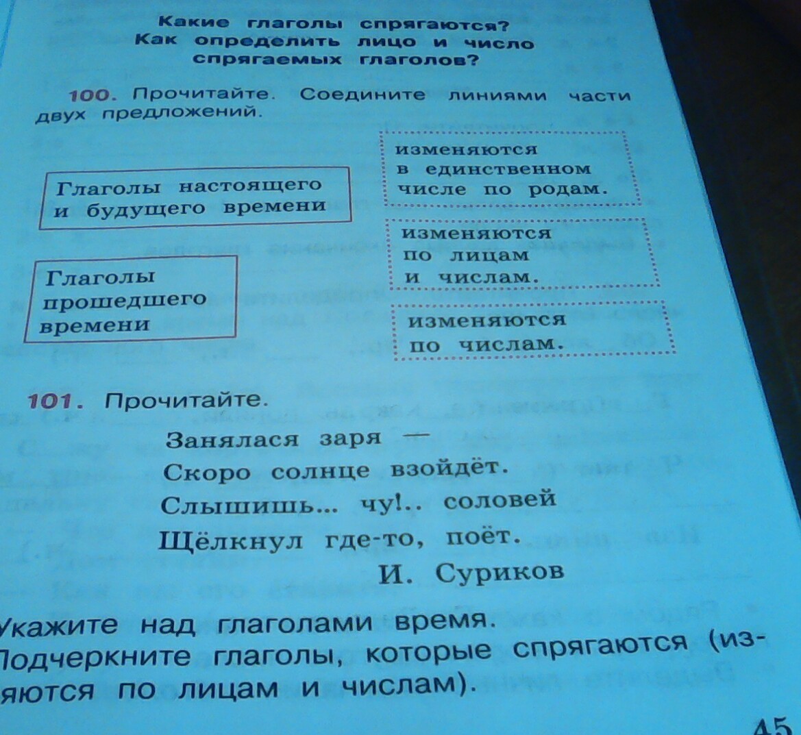 Глаголы настоящего и будущего времени изменяются по лицам и числам.