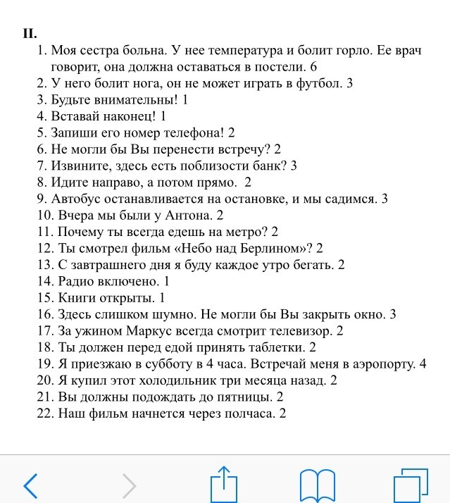 1.Meine Schwester ist krank. Sie hat Fieber. Sie hat Halsschmerzen. Ihr Arzt sagt, dass sie bleiben im Bett muss.