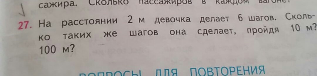 Ответ: за 10 м - 30 шагов, за 100 м - 300 шагов.