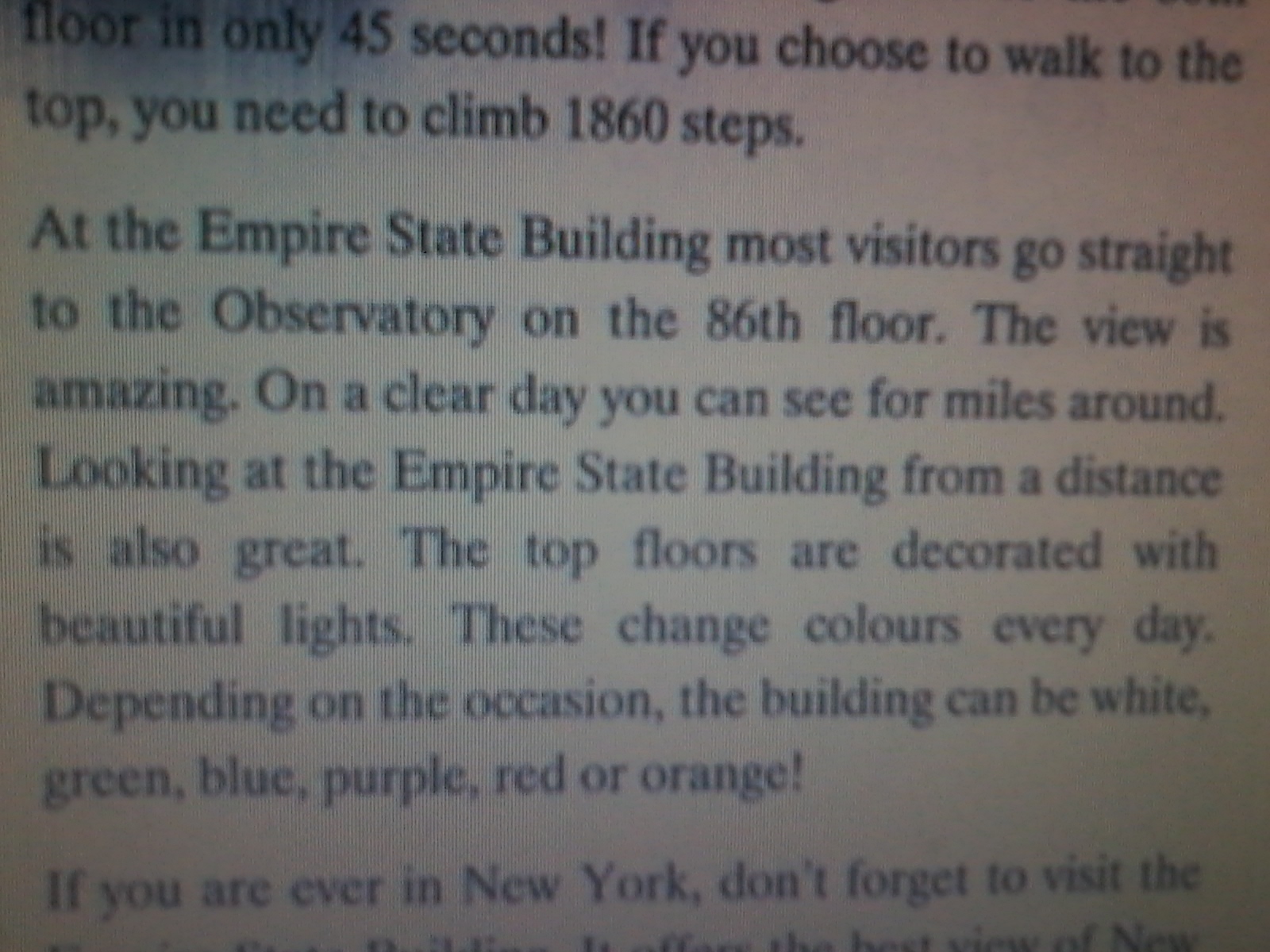 Большинство посетителей Эмпайр-Стейт-Билдинг направляются прямо на смотровую площадку на 86 этаже. Вид восхитительный. В ясный день вы можете увидеть все на мили вокруг. Посмотрите на Эмпайр-Стейт-Билдинг издалека - здание так же замечательно. Верхние этажи оформлены красивыми огнями (красивой подсветкой). Они меняют цвета каждый день. В зависимости от события, здание может быть белым, зеленым, голубым, багряным (фиолетовым), красным или оранжевым!